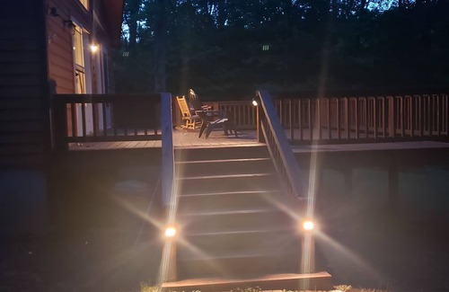 • Relax and have dinner on the table in the screened in porch in the evenings or sit by the fire at the fire pit with the provided skewers for marshmallow and hot dog roasting