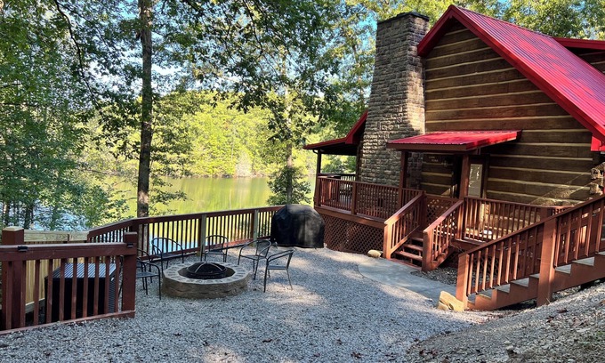 Nestled along the serene shores of Wood Creek Lake in London, Kentucky sits a cozy cabin retreat, surrounded by towering trees and the gentle sounds of nature. The cabin exudes rustic charm, with a spacious wooden deck offering panoramic views of the water as well as a private dock, perfect for fishing or simply lounging in the sun.