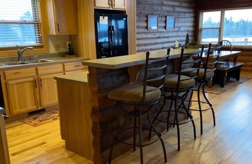 Amenities include on-site washer and dryer (with a supply of detergent pods), a dishwasher and other standard kitchen appliances (toaster, coffee maker, blender, etc). There just about everything you'd need for a meal (except the food). There are all kinds of pots & pans, a toaster, a microwave, a coffee maker, utensils and place settings. When it's time to relax in the cabin, enjoy chess, Uno, dominos, poker, or a number of other games supplied. You can watch one of the many DVD's in our on-site library, or stream your favorite blockbuster movie or TV show from one of the 65" screen TV's. The sleeping areas are comfortable and spacious, and the bathrooms are clean and modern. Towels, pillows, and linens are included (along with a supply of paper products for the kitchen and baths), so no need to bring anything but your ATVs, snow shoes, bicycles, skis, snowmobiles, or whatever else your adventures require.