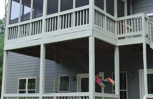 Enjoy the double hammock near the water's edge and porch swing on the dock for relaxing by the lake. Our cove is the perfect spot for kids to swim in the lake, right off the dock. We also have 'Kingsford' charcoal grill on the front porch... as well as beautiful outdoor furniture on the screened porch. The large screened porch is everyone's favorite gathering place, but there are more decks and porches to enjoy, including a dining gazebo by the water with a picnic table. Our 'Old Town' 3-person canoe is also available for our guests use.