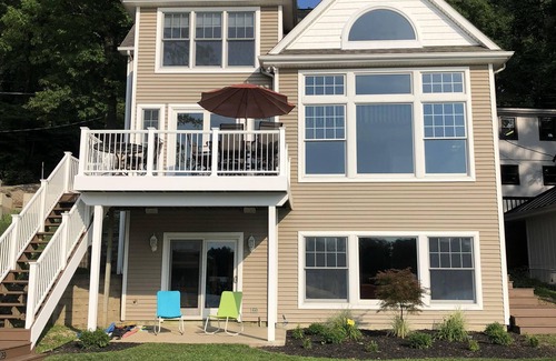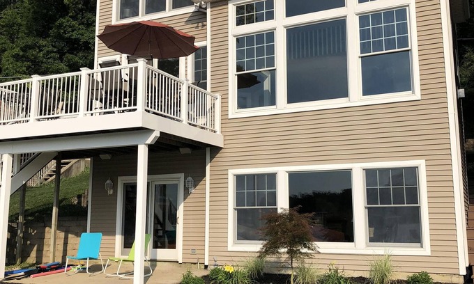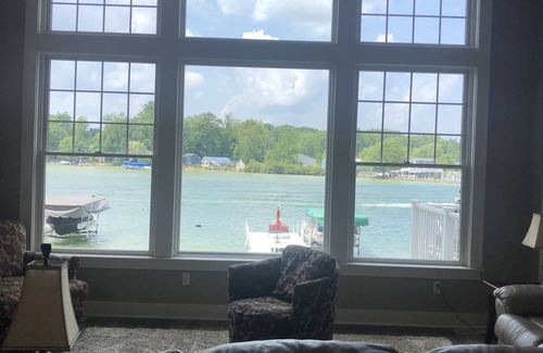 Enjoy an amazing sunrise and sunset from the balcony of our Lake James home. This clean and bright lakefront home offers majestic views of the lake during any season. The efficient open floor plan includes vaulted ceilings and a stone fireplace. This 3,000 square foot home has four bedrooms, 3 baths, and sleeps 16. Basement offers extra living area including large TV, and full bath. You can access the lake from the lower level. Enjoy a quiet ride across the lake in a kayak or go fishing off the dock in front of the cottage. The cottage is conveniently located close to Pokagon State Park, Tom's Donuts, Yo Yo's Ice Cream, and shopping at Tanger Outlet. Create lasting memories in our lakefront home. We have a pontoon for rent upon request.