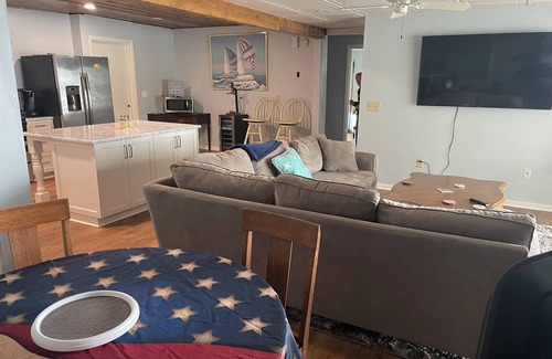 Nestled in Seneca, located 7 miles from Clemson University. View spectacular sunrises and mountains on Lake Keowee minutes from restaurants, groceries, and conveniences. This lower-level flat approximates 1,000 square feet and offers 2 bedrooms with a cozy king, full, and queen bed setup. Kitchen equipped with modern appliances; including dishwasher, microwave, oven/stove, Keurig coffee maker, wine chiller and full-size refrigerator with ice maker. This space has AC, heating, WiFi and a 55-inch television. Outdoor amenities include, table and chairs, Adirondack chairs, firepit, canoe, kayaks and paddleboards. Life jackets are available and required on kayaks, canoe or paddleboards. No lifeguard on duty, renters swim at their own risk. The owners occupy the upper level with only the yard being shared space