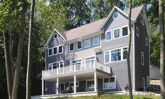 Beautiful Lakefront Home- Sleeps 20 is located in Dowling. Beautiful Lakefront Home- Sleeps 20 provides accommodation, featuring Fireplace/Heating, Child Friendly, Laundry, among other amenities. This House features Fireplace/Heating, Child Friendly, Laundry, to make your stay a comfortable one.