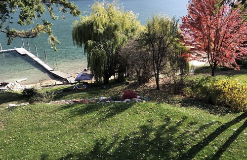 Enjoy our suite! We have recently rebuilt our lake home. Our suite has heated floors, a full size kitchen with a gas range, large fridge and island. The bedroom has a sliding barn door and has a very comfortable king bed and new linens. There is also a comfortable pull out couch. We have a full size bathroom with a tub and shower. You'll love walking out your french doors to your private patio. Feel free to enjoy the beach, bring your kayak or paddle boards. The suite has a tv and access to Netflix. Our space is ideal for couples or small family's with one or two children. Our home is on a large property with fruit trees and lots of green space. The suite is a lower level suite with its own entrance. our family lives above. We are very close to town a 6 min drive for dining out and taking in Baker street and 20mins from Whitewater Ski Resort. You will enjoy our genuine Kootenay location anytime of year !