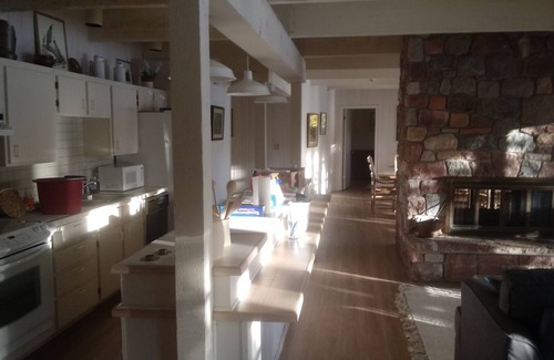 2 bedroom 2.5 bath beautiful, remodeled, lake front home. Three queen beds and two sofa/sleepers, sleeps 6-10 people. Full kitchen, washer/dryer, A/C, double fireplace, three screened porches, fenced front yard, two private docks, big screen smart TV, WiFi, Grill, fully furnished, close to hiking trails and boat launch, Incredible views, winter access, ten minutes to general store 75 minutes to "city"