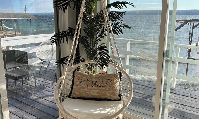 Come experience our beautiful sunrises and sunsets in a private and comfortable location for your family/group! Spacious nautical interior with heated floors and stainless steel appliances! Kayak off your own private dock onto the beautiful Cayuga lake! Bird watch and spot ducks, geese, swans, grebes, coots, cormorants, and every now and then, even local rarities such as American White Pelicans! Coffee pods included!