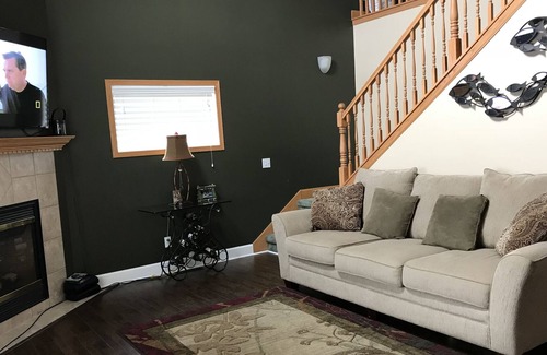 Beautiful lakeview townhome in the rolling hills of Apple Canyon Lake. 3 levels each with their own bedroom and full bathroom. Tastefully decorated with all new beds, furniture. Kitchen fully stocked. Towels and linens provided. Deck overlooking lake with bar height fire table and grill. Plenty of space to hang out inside or out with full finished walk out basement with pool table and patio. Private community pool, tennis courts, basketball courts, fishing, lakefront restaurant, 9hole golf course—ALL WITHIN SHORT WALKING DISTANCE!! Rent a pontoon or fishing boat for a half or full day for some fun on the water. Venture onto the 13 miles of winding hilly hiking trails, relax at the beach, play some sand volleyball, practice your archery skills.... and if that’s not enough, venture 13 miles down the winding scenic roads for a trip into Historic Galena where you will find a quaint shopping district lined with eclectic shops and dining, go hot air ballooning, sign up for a ghost tour, play more golf courses, relax and unwind at the famous Galena Winery, day spas, and so much more! Want more adventure? Visit Chestnut Mountain In the summer months for exciting zip lining or go skiing and snowboarding in the winter months! There’s so much to do! You!ll love it here!