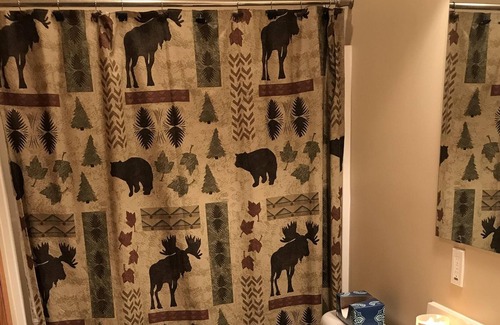 - Ranch style farmhouse lodging with upper and lower bedrooms, one and half bath