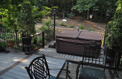 Wonderful setting to relax and soak in the hot tub after a game or long day or no reason.