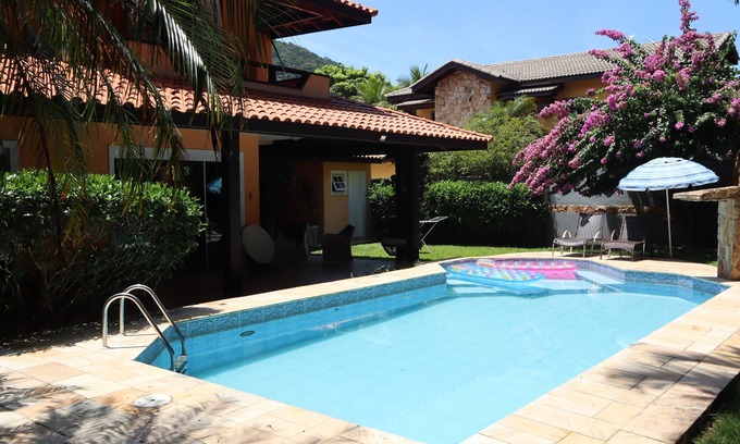 The pool leisure area and front suite overlook mountains and Atlantic rainforest. The beach of Pernambuco has tents with chair and umbrella service, which avoids the worry or need to take any structure to stay on the beach, besides being a beautiful beach, surrounded by mountains and very well frequented. The house is very suitable for family celebrations. Children and pets are always welcome.