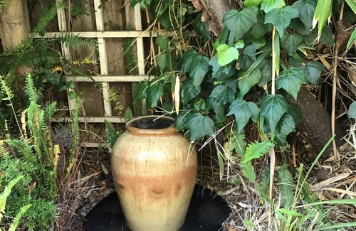 The studio is attached to the main house. The property has a large back yard with a built in barbecue, pool (not heated) and gym, all are available to guests to use.