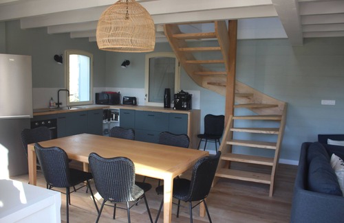 The house concerned has a surface of 60m2 and is composed of a large fitted kitchen open to the living room. Upstairs, you will find 1 bedroom with 1 double bed and 1 bedroom with 2 single beds 1 bathroom with shower and toilet.