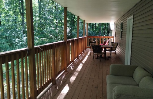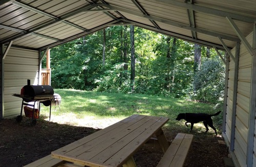 This is your peaceful and serene nature getaway with an off grid appeal. It is secluded and beautiful and borders the Shawnee National Forest boundary. It is right on the wine trail in southern Illinois, with plenty of orchards and famous hiking trails such as Little Grand Canyon and Pomona Natural Bridge. Hunting is legal on this 8.2 acre property, and there are plenty of places to hike on the property and into the connecting Shawnee National Forest. There are picnic areas in the woods and a spacious back deck to enjoy your morning coffee or evening glass of wine while enjoying the sunset. This place is very secluded and there is almost no traffic as it sits on a one lane farm road. The entire home has been renovated and remodeled, with a wood burning stove inside. For 2024, it is in the heart of total darkness for the eclipse! Rent this secluded place and have it all to yourself for the week! Your pets are more than welcome! The bedrooms sleep 5 people. Extra guests are welcome to bring air mattresses. The kitchen has coffee and a coffee maker, as well as ice and water. There is bathtub and a shower for guests. There is also a sheltered picnic area outside in case of rain, as well as a covered back deck. WI-FI has just been added to the home! .