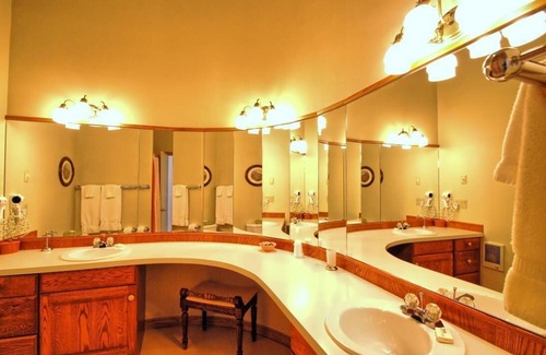 The Falcon's Ledge lodge is a luxurious 12,000 square foot lodge with 9 bedrooms and 11 bathrooms. The main floor has a large dining room, private meeting room, large, commercial kitchen, a TV room, and sitting area with a fireplace, and one bedroom with a full bathroom. The upstairs has 7 bedrooms, all with full bathrooms, and a sitting/reading area. The downstairs has one bedroom, a laundry room with a bathroom, and a billiard/ping pong room. A private swimming pool and 10 person hot tub is located in the backyard, and the large covered deck is perfect for relaxing in the mornings and evenings.