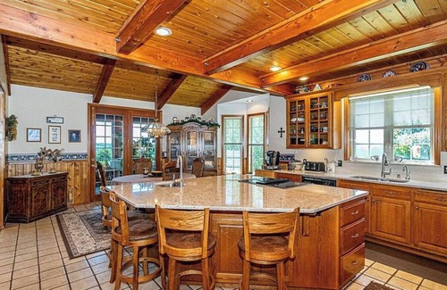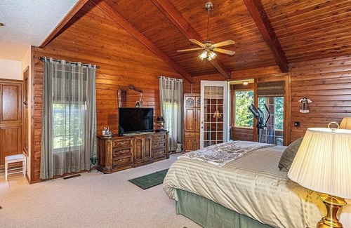 Beautiful 4 bedroom lodge with fireplace, laundry and jacuzzi tub. Great view and 50 acres of forest trails. Bring your horses and trail ride, your 4wheeler, or walk the trails. Or relax by the fire or outside around the fire pit! Perfect for a family get away or small family reunion. Plenty of parking and stalls for horses. Beautiful open kitchen for family gathering around meal time.