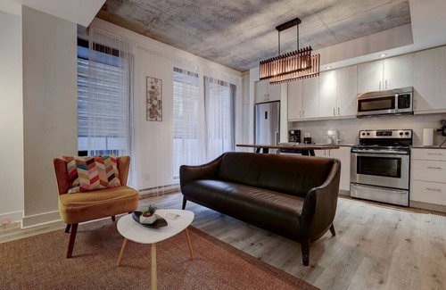 Unwind in this sleek and inviting 1-bedroom apartment, located in a calm and walkable pocket downtown near the Old Port, just a 3-minute walk from Square-Victoria–OACI metro station. With a private balcony, Smart HD TV with streaming, and in-unit washer & dryer, this space is perfect for travelers seeking a mix of comfort, convenience, and central location.