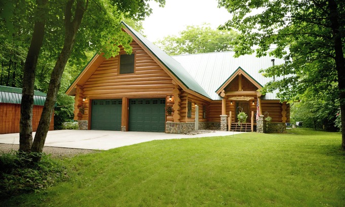 Beautiful log cabin in the woods with a hot tub. 5 min walk to a quiet beach. | Cabin in Brimley