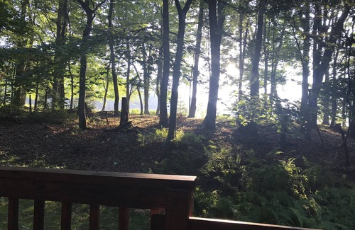 The kitchen is well equipped and all linens are provided. Relax on the big wrap around porches as dusk falls or as the sun rises over the crest and enjoy nature at its finest as the turkeys fly over the ridge, or the deer emerge from their resting places in the laurels. Don't forget your camera!
