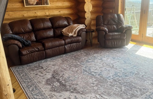 Get ready to relax in this 5-bedroom cabin in Yankton. This fabulous property features 3 king beds, 1 queen bed, and 1 bunk bed, perfect for a large group of guests. With amenities like a washing machine, WiFi, and AC, your stay will be comfortable and convenient. The 2.5 bathrooms with showers and hair dryers ensure everyone can freshen up easily. There is an on site washer and dryer and drying rack. Each closet has clothes hangers, robes and luggage rack. The bathrooms also have small complimentary essentials in case you forget something. Board games are also provided. Kitchen has basic dishes and utensils. Also in the kitchen are the following items: coffee maker and filters, crockpot, pizzazz, toaster, cast iron pans, 9x13 baking pan, cutting boards, and fridge is equipped with ice maker. Loft area has a table with 4 swivel chairs and 8 additional folding chairs. Propane grill is provided on deck along grill tools. There are outdoor cameras for safety purposes, they do not point into the cabin. Escape to this enchanting retreat and create unforgettable memories with your loved ones. We'll be available to answer any questions while you stay at our place.