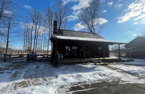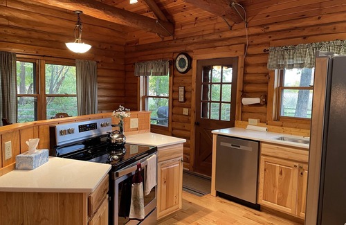 The cedar log cabin was built for our Grandpa in 1983. The living area is open and inviting with a fireplace built using field stones collected on the family farm. It features a newly renovated kitchen with all of the utensils you might need to create meals during your stay. The cabin has central air/heat. Enjoy sitting on the covered front porch that looks out over the wooded yard which includes a swing set/play fort for kids. The back deck includes a gas grill (small charcoal grill is also available), table and chairs. Surrounded by a split rail fence, the back yard looks out over a wild flower field where deer are sighted almost daily. Spend the evenings by an outdoor fire (pit and wood provided) and enjoy roasting marshmallows and gazing at the stars.