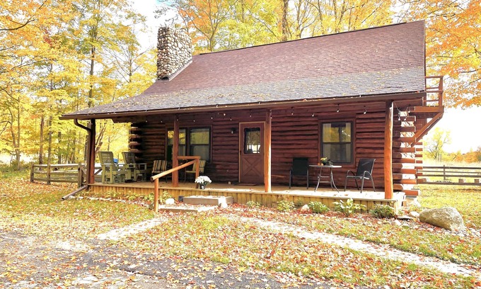 Escape to a peaceful log cabin in the woods located in beautiful Southwest Michigan. The cabin is part of a Centennial fruit farm with plenty of land to explore and a private 45 acre fishing lake. Spend the day relaxing in the cabin, baking, reading, sitting by a camp fire, reconnecting with loved ones, fishing, enjoying nature, and relishing the abundant peace that is present here.