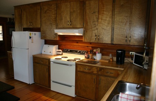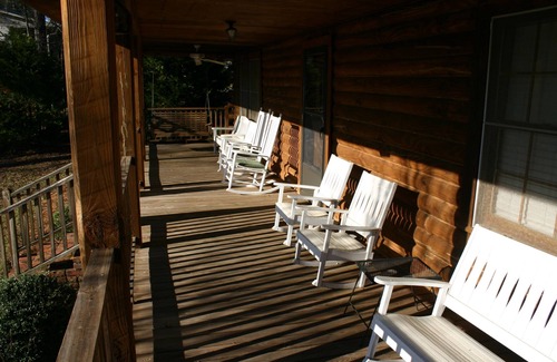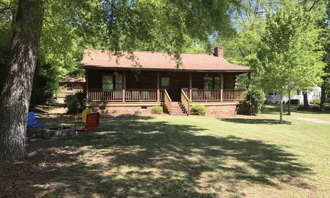 This 1200 square foot log cabin is located on a quiet 1 acre wooded lot at end of a cove just off the big water. With no developments on the opposite side, the cove is an excellent location for fishing, swimming, paddle boarding, and kayaking. The cabin sleeps six and features two bedrooms with one queen bed and two twin beds. The queen size sleeper sofa in the living area accommodates two comfortably. A large front porch with a swing and plenty of rocking chairs is a great place to start and end the day. The fire pit on the lake side is a great place to spend time with family and friends in the evening. Fire wood is provided.