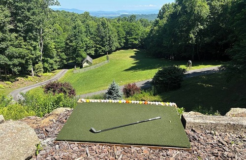 Rental is located just 5 miles from Downtown Hendersonville, NC in the beautiful Blue Ridge Mountains. 2000 sq ft of living area, located on the basement level of a 5600 sq ft home. This walkout basement has full (long range) views, with 3 furnished bedrooms, 1 bathroom, a large living area with gas fireplace (winter use only), an exercise room with weight bench, a porch with porch swing, private driving range, putting green and more.