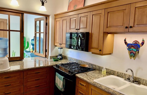 Enjoy our beautiful two bedroom, two bath home located in a safe ex-pat enclave called the Loreto Bay Villages, which still feels like a secret resort. No crowds or high rises, Loreto Bay is like you picture Mexico should be - next to the glistening Sea of Cortez, where you can enjoy sunrise kayaking or paddle boarding in view of the beautiful Sierra de la Giganta Mountains. Fly into the Loreto International Airport, which is five miles from our villa. We are also a 5 - 10 minute walk to the azure blue Sea of Cortez. Or if you prefer, just walk out the front door, for an early morning swim at our pool literally a stone's throw, next door to our home, or hop on our bike and swim at the lap pool, a 5 minute bike ride away. Then, stop at El Corazon for a fresh smoothie or breakfast or early lunch. A gourmet grocery store is right across the street with delicious steaks, fresh seafood and vegetables, and if you walk one minute up from the grocery, you'll have the best massage of your life from Sharon! Downtown is a 15 minute car ride away where you can enjoy the authentic Mexican town of Loreto with many restaurants.