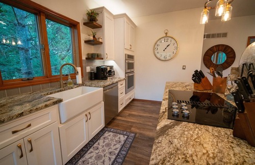 - Gourmet Kitchen: Enjoy a fully stocked kitchen featuring top-of-the-line appliances, a coffee station, and a spacious island for meal preparations, making it easy to host rehearsal dinners or family gatherings.
