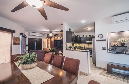 Located just a few meters from La Paz's Malecon, this 4 Bedroom can host up to 10-12 guests. Enjoy the comfort of this amazing place with a fully equipped kitchen, laundry station, grill and pool. You can also enjoy beautiful sunsets and the best views of La Paz on our great ocean-view terrace. The residence is located in a private complex with 24-hour security.
