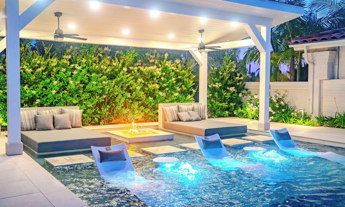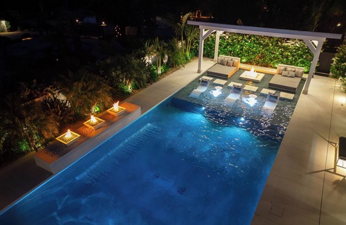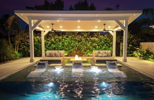 • Poolside fire bowls & in-pool daybed fire feature: $40/hr, owner must ignite (available until 10pm)