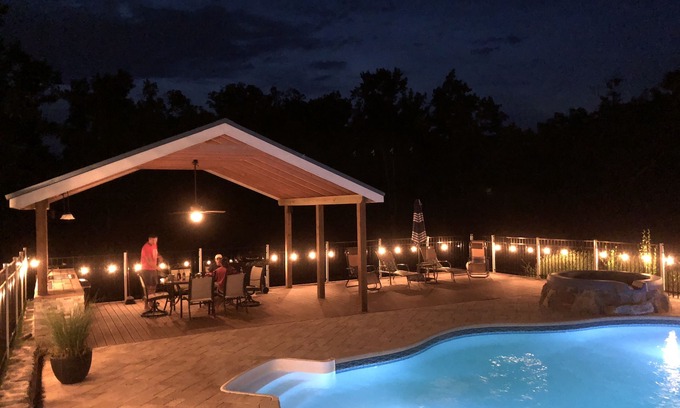 Enjoy nights on the back deck sitting by the pool overlooking over 50 acres of trees and green space with walking trails.