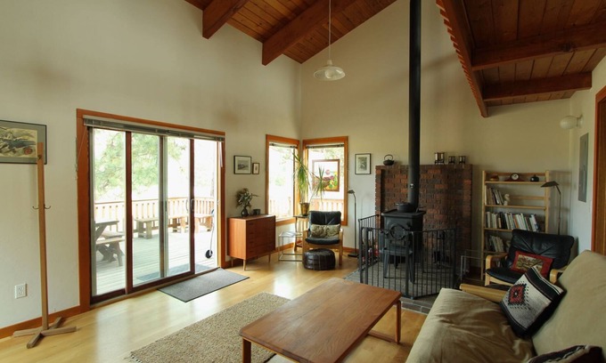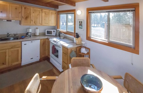 You'll feellike you're a world away, while being within walking or biking distance to downtown Sisters. Just minutes toshops and restaurants, cozy Meadow View Cabin offers peace and quiet on 10 acres with sage, junipers and towering pines. The Cabin overlooks 60 acres of natural meadow bordered by seasonal Indian Ford Creek. Wildlife abounds . . . watch deer, coyotes, bunnies, hawks, eagles, vultures, occasional wild turkeys and multiple other bird species from the spacious front deck. A short walk to the ‘brace post’ at the northeast corner of the property offers a sitting deck with four chairs and views of the Cascade Mountains from Three Fingered Jack to the South Sister.