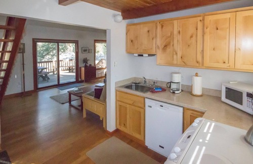 Beautiful wood floors, beams, ceilings and trim. There are two separate sleeping areas in the loft, one with a queen bed and one with a twin XL. A double futon is located in the main floor living area. Other amenities include a gas Weber barbeque, outdoor seating and dining tables, free fire wood and an outdoor shower. Bicycle rentals are available in nearby Sisters.