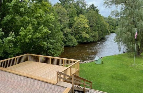 Nature lovers, book your glistening riverside getaway today! Rent our spacious waterfront, forest-bathed house nestled in the heart of scenic White Cloud, MI. A unique and truly tranquil escape, this house has direct backyard access to the serene, shining White River. Imagine awakening in complete peace to a beautiful sunrise reflecting on the surface of the glittering water serenaded by the morning songbirds. Any season of the year, this location boasts a plethora of fun activities to enjoy.