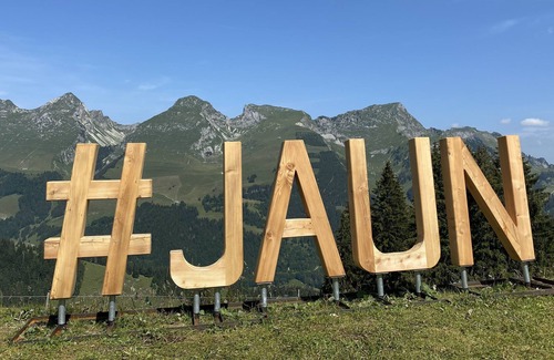 - Sunny chalet vacation apartment with a view of the Jaun valley in the west alps