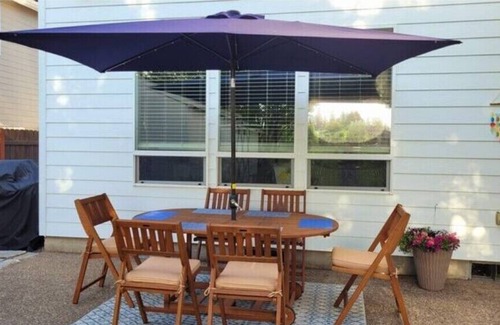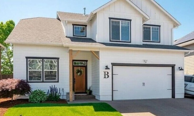 Forget your worries in this spacious and serene space featuring 4 bedrooms, 2.5 bathrooms, a spacious and a well-equipped kitchen, dining room and nook, an equipped office space and a cozy media room for winding down your evening over your favorite movie(s). Watch the sunset on your backyard, relax on the hammock, or soak on the outdoor hot tub. This modern farmhouse is perfect for a family or friends getaway. Willamette River and several wineries are just a few minutes' drive away.