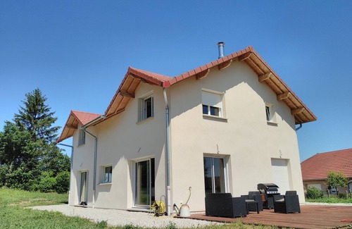 Beautiful modern house, New, Super equipped with Swiss Quality is located in Mont-sur-Monnet. Beautiful modern house, New, Super equipped with Swiss Quality provides accommodation, featuring Fireplace/Heating, Barbecue/Outdoor Cooking, Child Friendly, among other amenities. This House features Fireplace/Heating, Barbecue/Outdoor Cooking, Child Friendly, to make your stay a comfortable one.