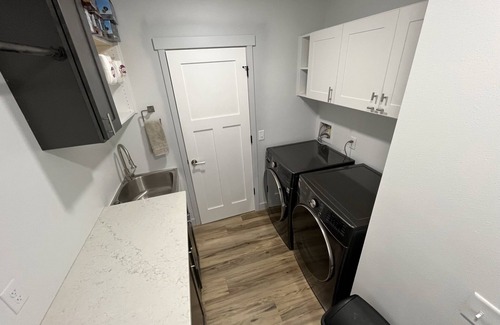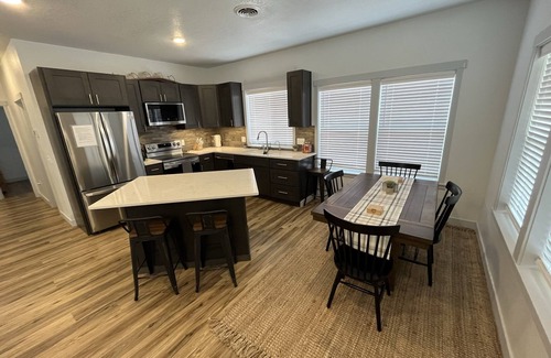 Newly constructed house sits in the Spring Creek recreation area next to Lake Oahe surrounded by of some of the best hunting and fishing spots in South Dakota. The house has an open and inviting living area with contemporary amenities. The master bedroom has a queen bed, includes an on-suite bathroom, and door to the back patio and garage. Bedroom two includes a queen bed. Bedroom three has a double bed.