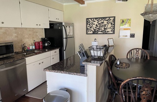 The condo is tastefully decorated with a warm and inviting ambience. High-speed internet and cable TV will keep you connected, while the fully-equipped kitchen is inviting for cooks. The unit is on one floor with two roomy bedrooms and a living room with a pull-out sofa. The master bedroom has a connecting bathroom and there is a second full bathroom across from the guest bedroom. Both bedrooms contain TV’s and queen-sized beds. Perfect for two couples or a small family.