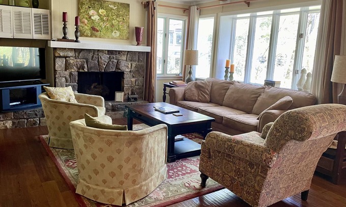 Ours is a quiet end unit around a beautiful wooded lot with golf course views and a mountain stream, and is a lovely place for a retreat. Drive 5 minutes out of the village to find restaurants, shopping, and grocery stores, or stay put, relax and enjoy the sounds of nature from the covered deck.