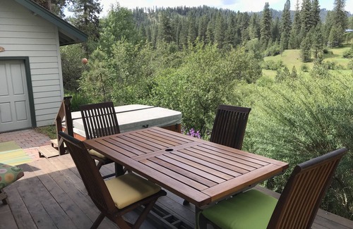 Beautiful mountain home with hot tub over looking Scriver Creek meadow. | House in Garden Valley