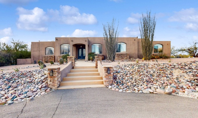 Sneak off to this gorgeous golf course-adjacent home located less than 16 miles due east of downtown Tucson! Find yourself conveniently close to countless scenic hiking trails and less than a dozen miles from the Arizona National Golf Club, Trail Dusty Town, the Gaslight Theatre, and the Tucson Botanical Gardens. If you want to cool off after days on the trails, slip into the community pool for a refreshing swim.