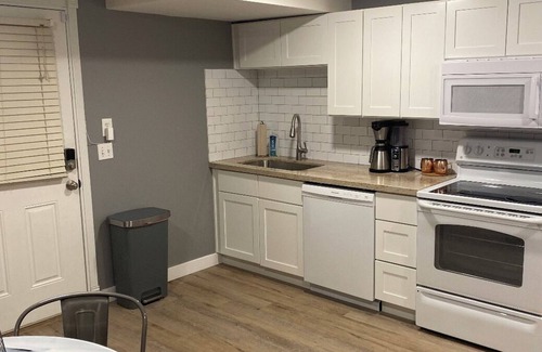 The kitchen is equipped with a dishwasher, a coffee maker, and a microwave. Connect to the WiFi, or get cozy in front of the Smart TV. And you won't have to pack extra clothes, because you'll have a washer and dryer, too.