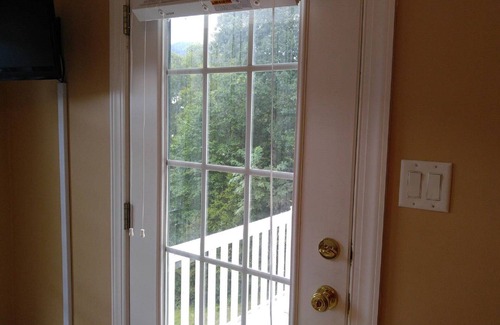 We are located just 20-30 minutes outside of Asheville, NC. Close to downtown but having a private mountain experience. This is a private room with your own patio area overlooking breathtaking mountains of the Blue Ridge. Spacious room with king bed, small refrigerator, microwave, and coffee maker. The private bathroom has a large tub, separate shower, and separate toilet room. The patio area is where you can enjoy drinking your coffee taking in the mountain views.