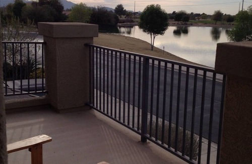 Private spacious 2 story home with semi open concept. Grand entryway with 24 foot ceiling then 10 foot ceilings throughout the rest of the home. The home entrance overlooks the beautiful lake while the backyard offers spectacular breathtaking views of South Mountain . This 3 bedroom 2.5 bathroom home sleeps 8 comfortably. Home has been refurnished and freshly painted in 2014, with stainless steel appliances throughout the kitchen which is also equipped with all cook ware, flatware, and drink ware, also featuring a breakfast bar. Dining table for up to 8 with leather chairs and chandelier. The living room has down leather couches with a smart TV. All bathrooms and first floor feature gorgeous 20 inch ceramic tile. The covered patio overlooks the mountains but also has outdoor lighting and overhead fans with brand new patio dining set, new lounge chairs, fire pit, and stainless steel gas grill. The first floor also offers a half bath, pantry, laundry room equipped with high efficiency washer/dryer, and 3 car garage.