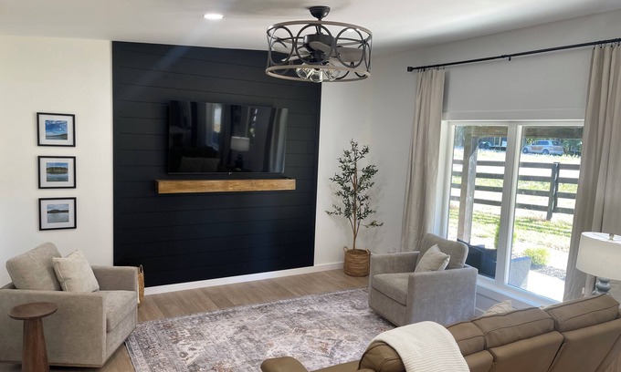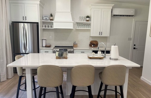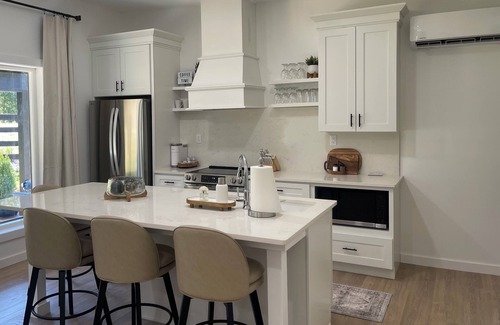 New Two Bedroom Cabin at Kentucky Lake. Beautiful Kitchen with Quartz Countertops and backsplash. King size beds in each room. Beautiful Liens, Leather sofa recliner, large tiled shower for your relaxation. Lake Access, plenty of parking. Front porch for your enjoyment and fire pit with chairs. Come relax and enjoy your stay! Additional cabin available to reserve.
