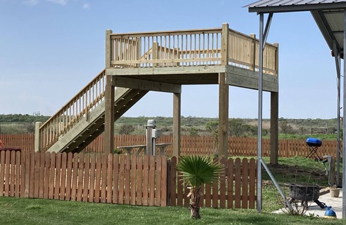 Beautiful new camper. Very clean. Large rv cover and large concrete. Large deck overMost other places don’t have a cover. During our Texas heat with no cover it makes a rv very uncomfortable! You need the cover to keep you cool and out of the rain.Large concrete pad . Some other rentals just sit on grass. So just sit on our concrete covered area and barbecue and watch the beautiful birds. Has beautiful sunsets from the large shared 10feet high deck, and a great view of all the barges going by .Has a fire pit with a grill on top of it to cook on. Fish and crab right out your back door