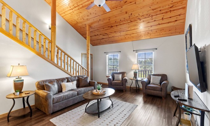 This fully furnished 3-bedroom condo boasts two master suites featuring king-size beds with ensuite baths, as well as a cozy loft bedroom with a queen bed and additional bathroom facilities. Each room is equipped with Smart TVs and premium linens, ensuring you feel at home during your stay. The fully equipped kitchen allows you to prepare meals effortlessly, while the communal amenities include charcoal grills and a refreshing pool, perfect for post-wedding relaxation. Plus, with our partnerships with local tubing companies and wedding venues, you can easily enhance your special occasion with unique experiences.