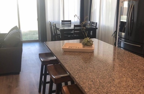 Gourmet kitchen with granite counter tops open to the living room and dinning room. This home also feutures ALEXA sytem. central heating and air condition, Dish TV and Netflix.